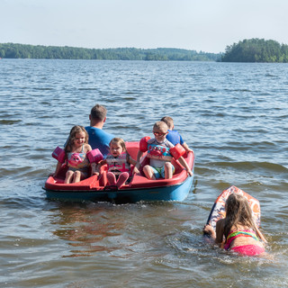 My uncle's place is tucked away in a nice and quiet little spot on Cupsuptic Lake. We were greeted with family, burgers, hot dogs, and a day out on the lake. My kids and my nieces all got a chance to go tubing for the first time. I think they liked it. ;)
